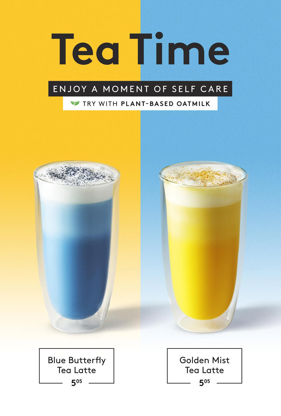 Goal: Design drink promo panels for seasonal campaigns with updated branding using brand colours. Yellow is tricky to work with because it can easily overpower the design or not pair well with the drinks.